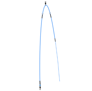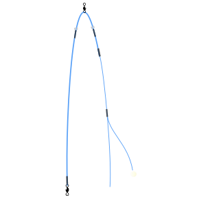 Oznaczając nasze systemy do surfcastingu literką D informujemy, że budowa systemu opiera się długim łukowatym szkielecie z grubej żyłki z podwójnym rozgałęzieniem. To budowa pozwalająca bocznym trokom poruszać się w zakresie osi stabilizacji innej niż oś ciężarka.